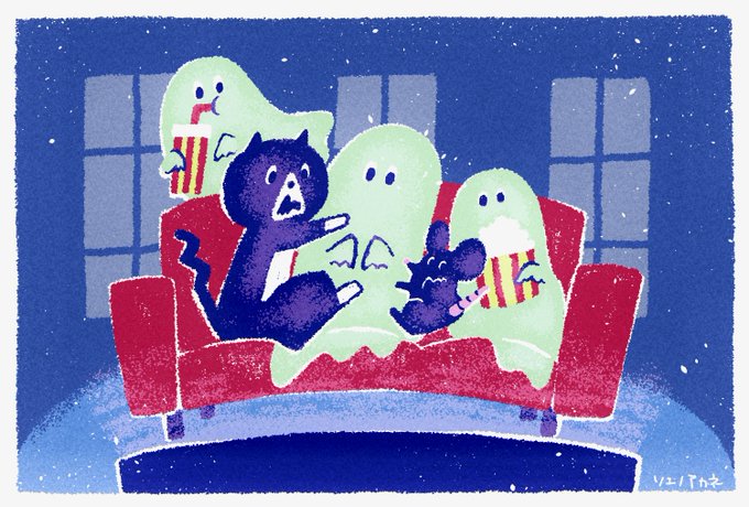 ホラー映画を観てるとみんな集まってくる。 #イラスト #イラスト好きな人と繋がりたい #絵描きさんと繋がりたい #ゆるいイラスト #絵柄好みって人にフォローされたい #イラストレーター #ゆるい絵 #可愛い #猫 #ホラー映画 #映画