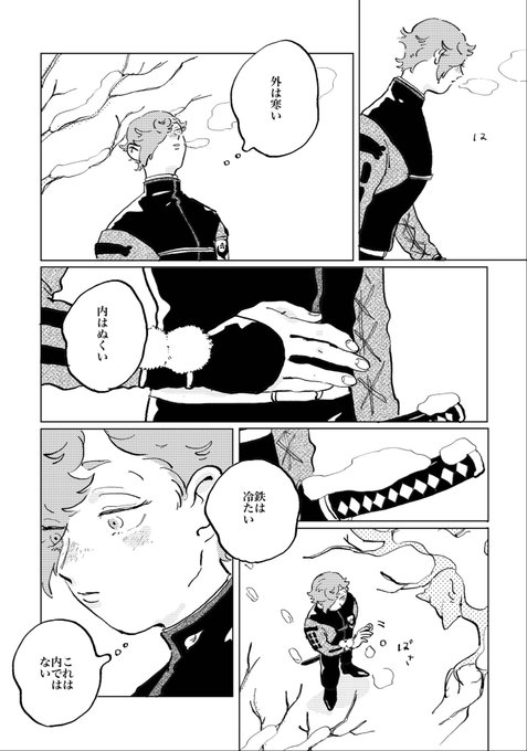 23 70 11/28新刊サンプルついった用(1/2) 新刊「この雪は燃える雪だ」A5/本文34ページ/400円予定 鶯丸極のことまだ消化できてない(私が)感じの本です。 内容の性質上極のネタバレを含むかも 21/11/23 11:29