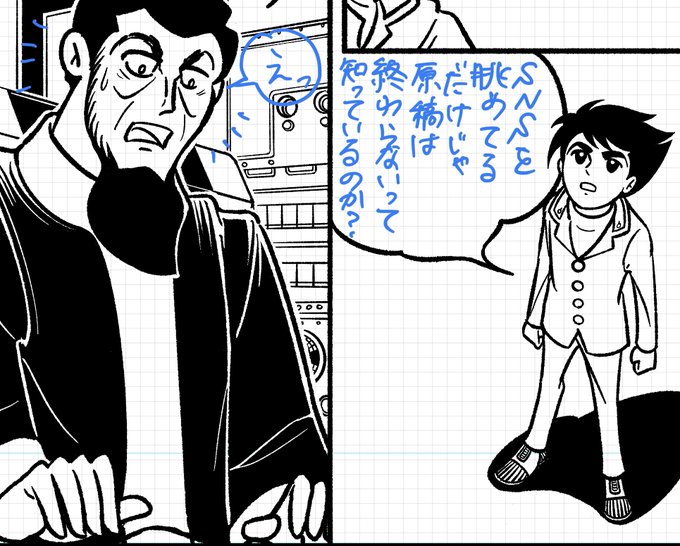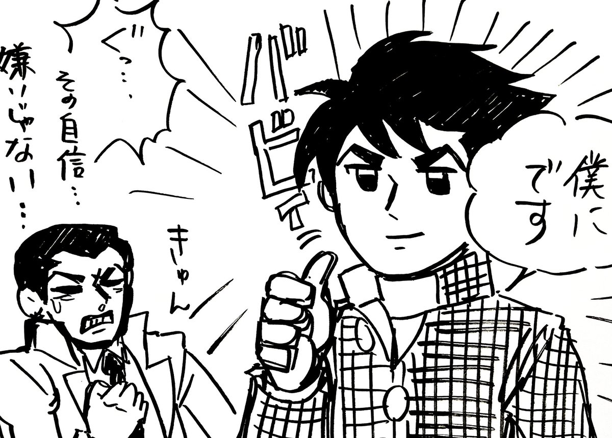 5 19 リターナー読破記念?として、横光版の迷シーンをノグチ先生風テイストで描いてみような落書き。 23/04/02 17:33