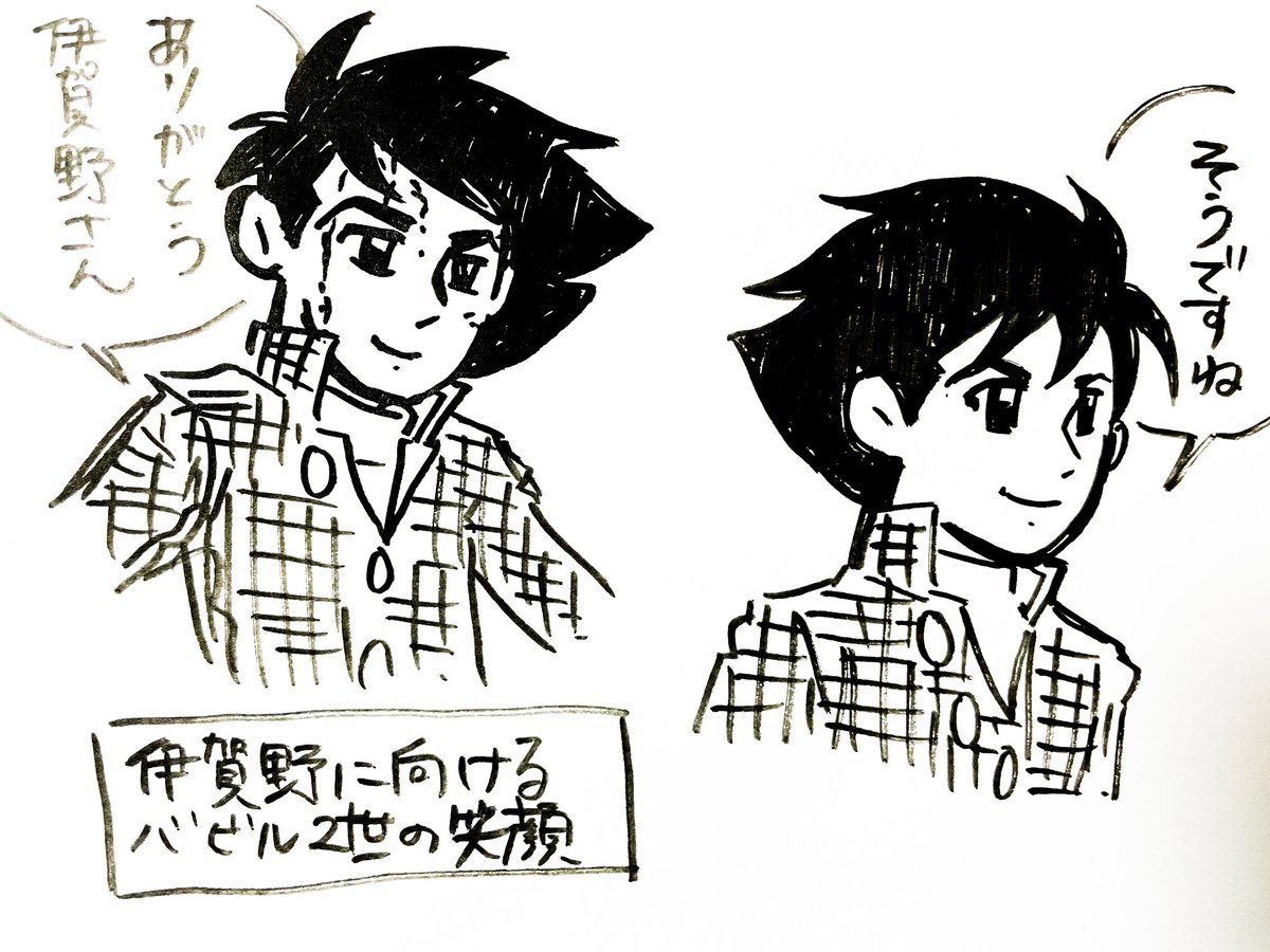 1 6 初描き😌 影丸くんのキャラデザはスターシステムすぎて、バビちゃんとどう差異を設けるか苦労しますな笑 敢えて違いを出すなら、影丸くんは髪の流れが上向きで、バビちゃんは横に流れる感じ…?(あと年齢か) 23/03/15 11:06