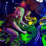 One more day of #inktober and it looks like Luana is crushing at this game xD . . #arcade #fliperama #games #motorcycle #neon #inktober2022 #challenge #day3 #oc #originalcharacter #characterdesign #art #illustration #webtoon #webcomics #procreate #wlw #lgbtq🌈 #sapphic #couple