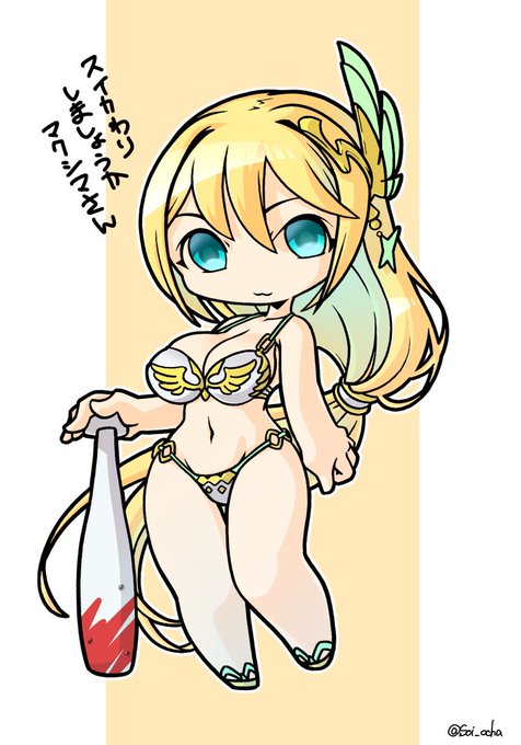 ロストフラグメントの情報を頼りにかつてスイカ割りと呼ばれていた謎の儀式を再現しようと試みる常夏ミカエルちゃん🍉 #グラスマお絵描き