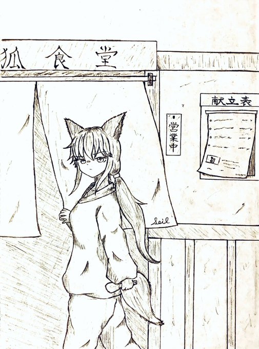 夜分にすみません 獣耳っ娘です☺️ 飯弧食堂のアイドル コミミさんの鋭い眼差し コミミ「寄ってくの?寄ってかないの?ーーーーーー早く 決めてよ…」 #お絵描き #絵描きさんと繋がりたい #オリジナルイラスト #食欲の秋