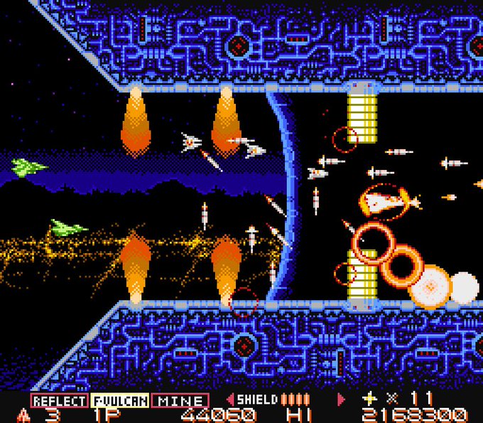 沙羅曼蛇 31歳おめでとう! 旧式フォースフィールド好きです。 防御を捨てて攻撃に特化てる辺りに漢気を感じる。 #沙羅曼蛇 #ロードブリティッシュ #ドット絵