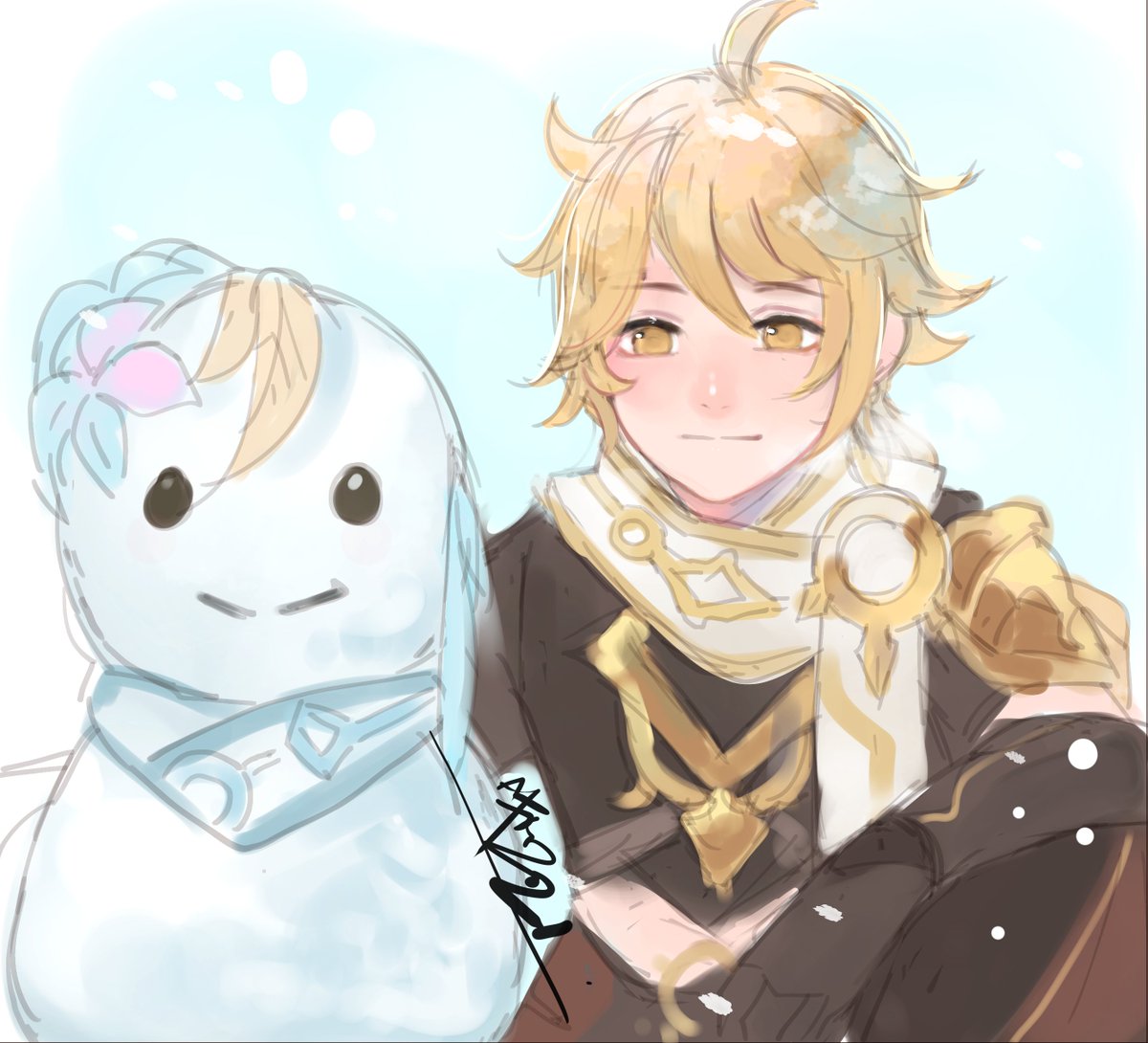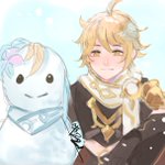 "Lumine, next time we meet let's go build a snowman together, okay?" #genshinimpactfanart #genshinimpact #aether #lumine