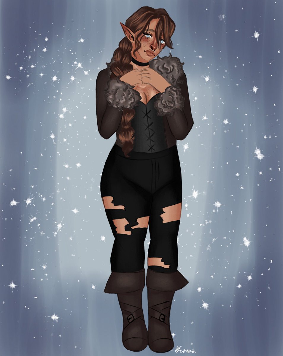 This is Visha. They’re my firling who (spoiler alert) is dead. I’m going to be using them for an avernus campaign in a few years that my friend is DMing! #DnD #RPG #art #characterdesign #ArtistOnTwitter #dnd5e #dndart #DnDcharacter #dungeonsanddragons