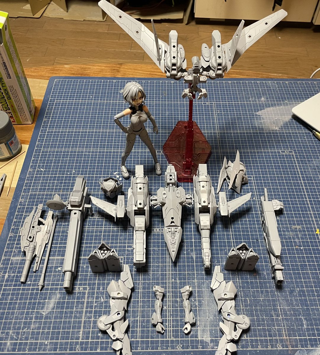 1 5 基本形はできた気がします エグゼニスウイングと朱羅九尾の余剰3mmジョイントが大活躍してます 余剰パーツ目当てでまた九尾買いたい... #メガミデバイス 23/05/14 11:04