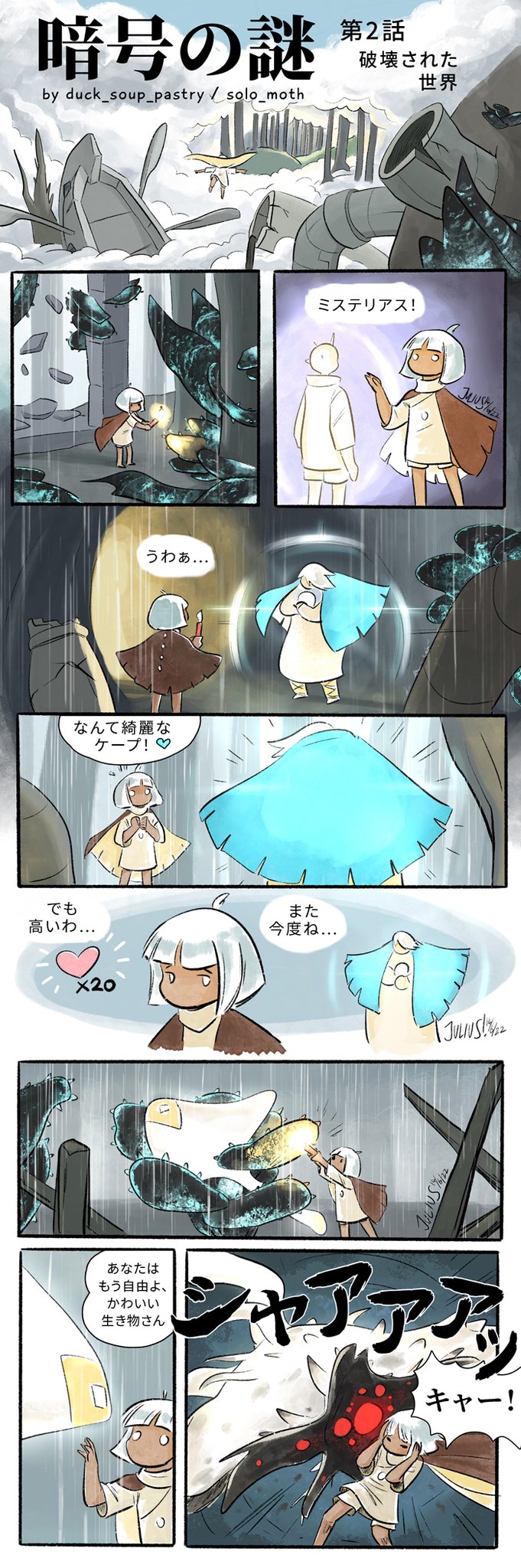 ⚠️顔あり Skyにインスピレーションを得た私の最新コミックをお楽しみください。全29話からなる物語で、定期的に投稿していきます。日本語翻訳してくれた @translations_at に感謝します! #sky星を紡ぐ子どもたち #thatskygame #SkyChildrenOfTheLight