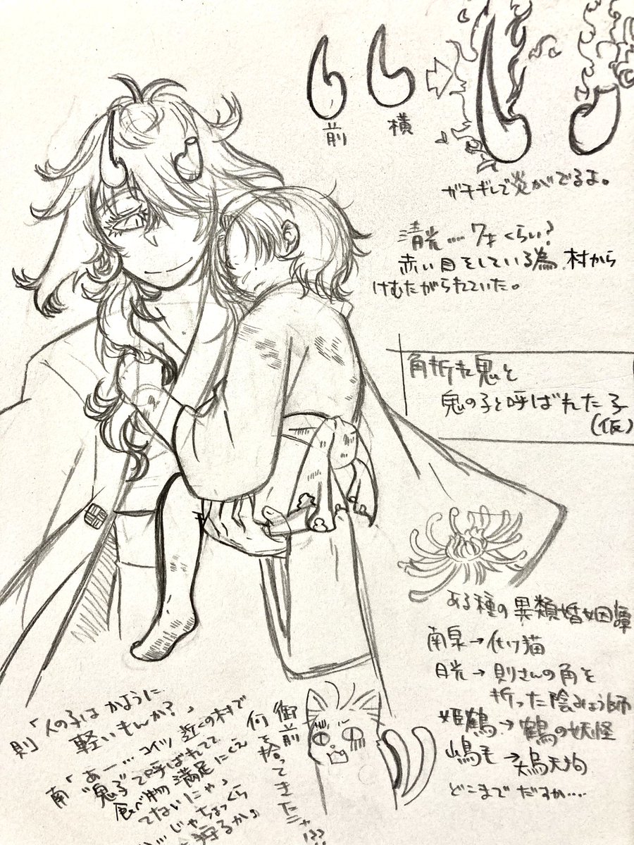 リプに繋げたらいいのか引用rtしたらいいのかわからなくて再あげ失礼します😅 鬼のりむねさんと鬼の子と言われたきよみつの落書き(積みネタ)(ねりねり中) twitter.com/soma1020_k/sta…