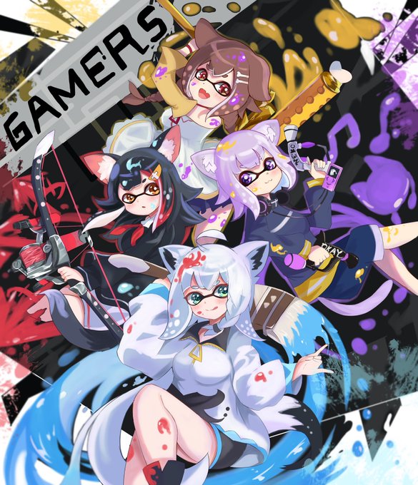 スプライブ ゲーマーズ🦊🐺🍙🥐 #絵フブキ #みおーん絵 #絵かゆ #できたてころね
