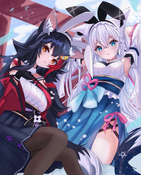あやふぶみクリスマス🦊🐺😈 (年明けちゃったけど許してください...) #絵フブキ #みおーん絵 #百鬼絵巻