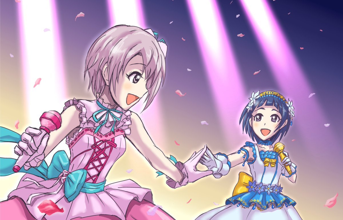 本日は岡崎泰葉と乙倉悠貴ちゃんのユニット「ジャンプ・リュミエール」結成一周年です!めでたい!リプ欄に以前作ったおとやすダイマもくっつけておくので良ければ見てください ユニット曲が歌えますように! #岡崎泰葉 #乙倉悠貴 #岡崎泰葉ともう一歩 #SfC予選C #ジャンプ・リュミエール一周年