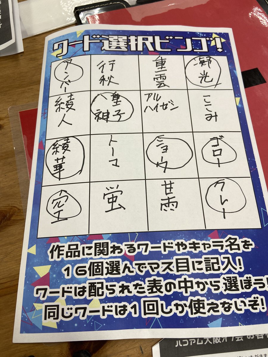 おそくほー! 上着忘れたトーマと原神オフ会参加してましたー! 初オフ会とても楽しかったです✨ ビンゴも3位!景品いただけて嬉しかったです👏 #ハコアム大阪オフ会