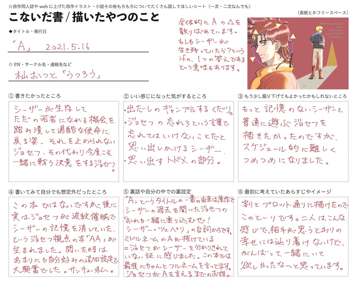⭐️#じょせしフェスタ 祝開催🌻 勝手なお祝いで前回開催時に発行した既刊「A」と無配を12/31までWEB再掲します。お暇な時にどうぞ🙏振り返りシートも書いたので、既に読んだ方はよかったらシートだけご覧ください(支部も最後に貼ってます) pixiv.net/artworks/10331… 12/17の新刊もご縁ありましたら🙇♀️