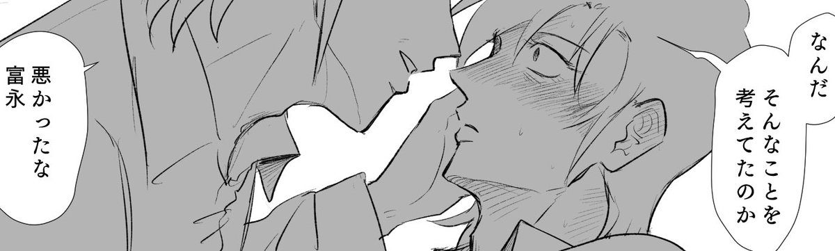K✌️のK富のRさらに2P枚を追加しました。攻めの赤面と、受けにおされてる?要素あります(画像2枚目のとこだけですが)。どんどん1枚目と雰囲気変わってすみません〜😭無計画で……あとまだ本番でなくてすみません……いつか次描く時こそその時だと思いますたぶんきっと poipiku.com/1276925/852647…