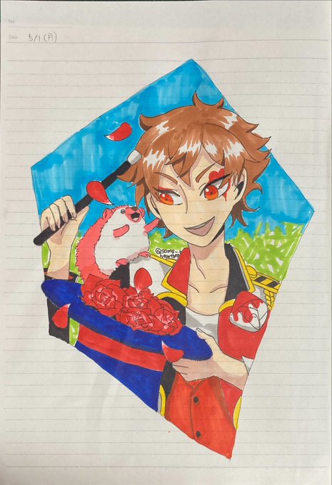 #twstファンアート #エース・トラッポラ #twst お久しぶりです! 最近落ち着いてきたのでぼちぼち絵を上げていこうと思います😌 これはツムツムで来てくれたエースとハリネズミちゃんが可愛かったので描いたやつ🦔