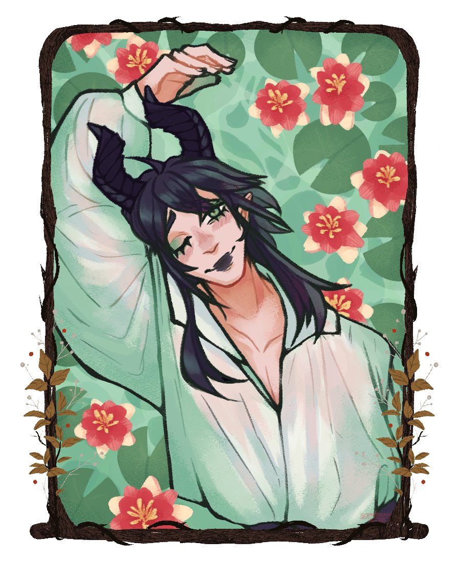 water lilies for peace and rebirth (my piece for @/humbuns's flowers for malleus birthday collab! very cool idea i was so excited to draw this alkjdshflskdhf) #twstファンアート #twst #flowersformalleus #twistedwonderland