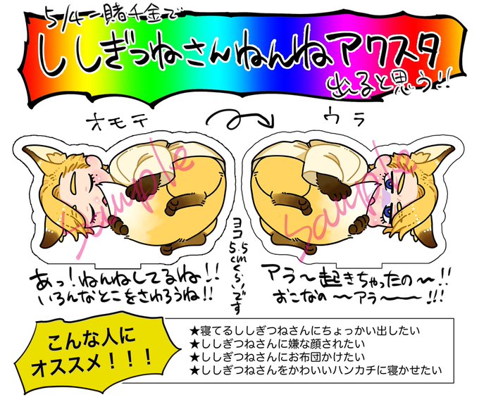 多分一賭に持っていけるししぎつねさんアクスタです!!!!1個600円予定です!!