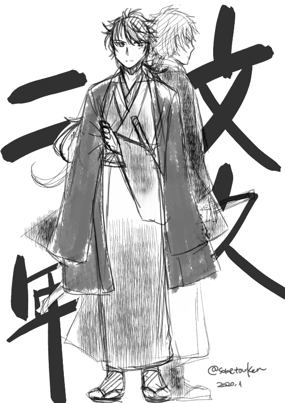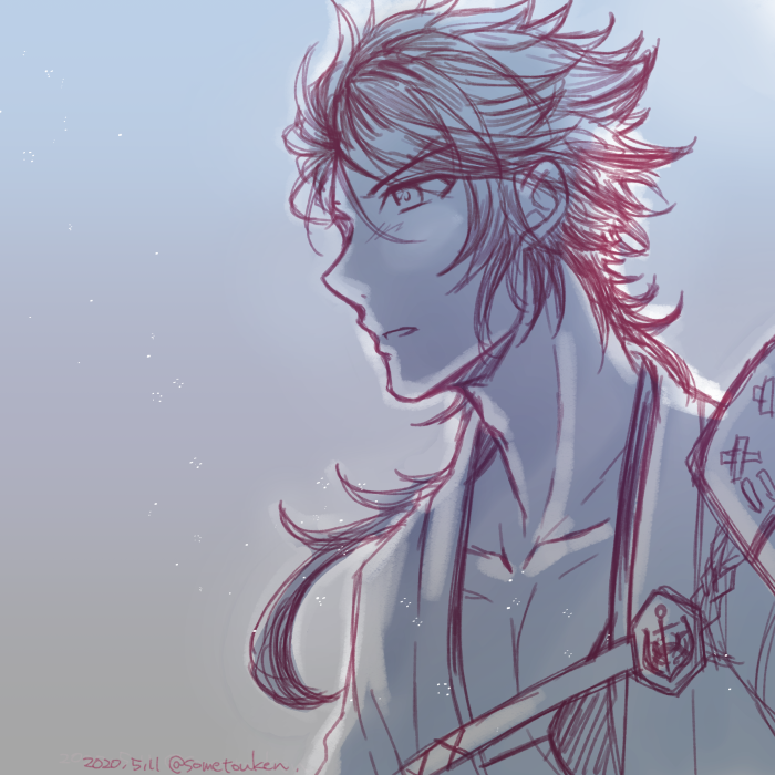 間に…あった!!(らくがきクオリティだけど) 今年は内番スタイルで…(カメラにちょっかいかけられた感)また一年よろしくね、むつ! #9月3日は刀帳93番の陸奥守吉行の日 #刀帳No93で9月3日は陸奥守吉行の日