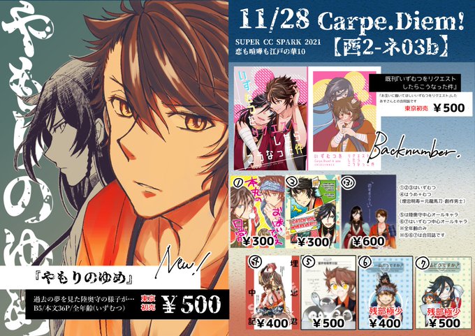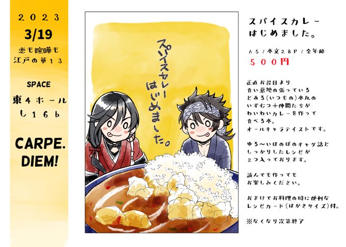 【お品書き】恋も喧嘩も江戸の華10|11/28(東京) | 染羽 #pixiv pixiv.net/artworks/94392… 間に合ったー!デザイン前回の流用で申し訳ない💦東京初売の本含めて既刊+無配ペーパー(季節外れだけど「おっぱいアイス」だよ!)持ち込みます。久々の東京のイベント、よろしくお願いします~!