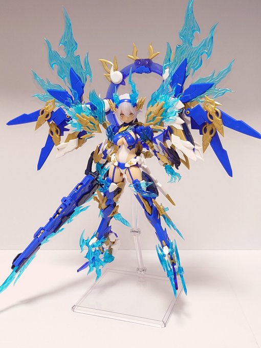 10 32 スサノヲ蒼炎組めた これ塗装してる人凄いなぁ……って組みながら思ってた、パーツ数めっちゃ多いわ #メガミデバイス 23/06/04 09:50