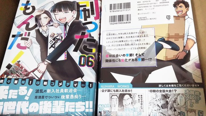 6巻の書影出ましたね!私も貼っとこ!今回は営業組とグッズの絵になりました。帯も「これしかない!」という色になっています。 発売は3月23日ですが、各書店さんにて予約の受付は始まっていますのでどうぞよろしくお願いします!#刷ったもんだ kc.kodansha.co.jp/product?item=0…
