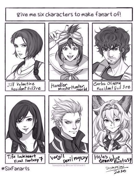 มาแล้วจ้า SixFanarts ขาวดำไป เห็นเพื่อนๆหลายคนลงสีแล้วรู้สึกตัวเองขี้เกียจเลย ฮาๆ ถ้ามีเวลาอาจจะมาวาดอีกรอบ ไม่ได้วาดแฟนอาร์ทนาน สนุกมากค่ะ เห็นไฟนอล7แล้ว อยากวาดแฟนอาร์ทยกแก๊งค์เลย!! #SixFanarts #SixFanartsChallenge #JillValentine #handler #MHW #CarlosOliveira #FF7Remake #Tifa