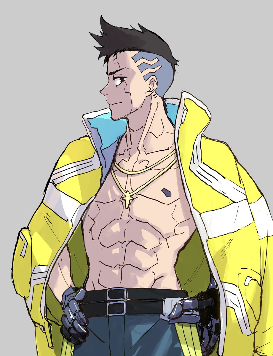 デイビッド(大)の裸ジャケット、セクシーでいいな 身体も商売道具だから見せつけてんのかな #cyberpunkedgerunners #edgerunners