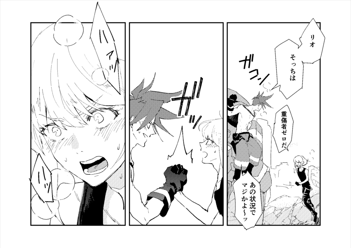 58 135 【ガロリオ同人誌再録】SHOOT ME AGAIN ガロがリオにキスされて混乱したり振り回されたりする小話 (1/6) 23/05/23 22:25