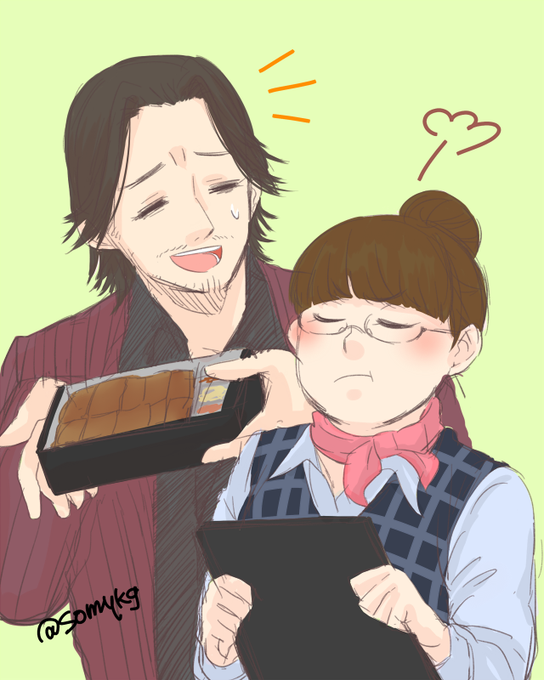 秋「そろそろ機嫌直してよ~!ほらっ!カルビ弁当だよー!」/不機嫌な花ちゃんを必死になだめる社長。 #龍如版深夜の真剣お絵描き60分一本勝負