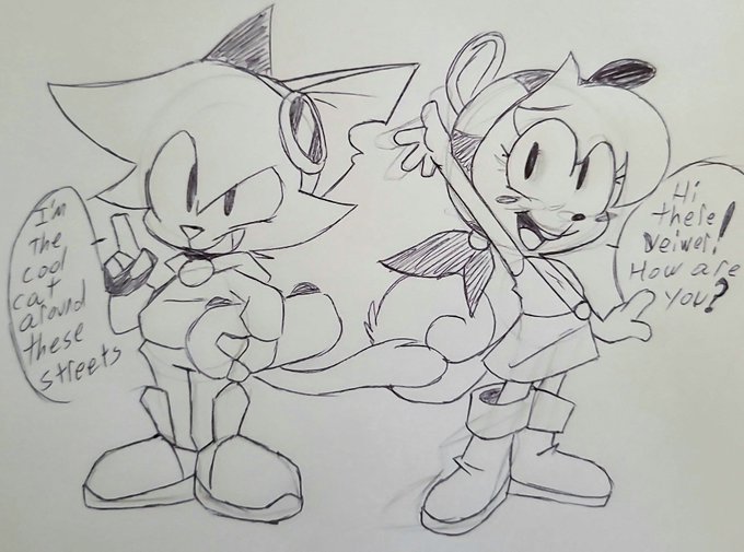 13 51 @ajmarekart's very own murphy & Mitzi, for the 400th time in someone's else's style/j Plus Mitzi confused Jake for Murphy.. for some reason. Also Peppino #sketches #sketchart #Pizzatowerfanart 23/03/05 07:30