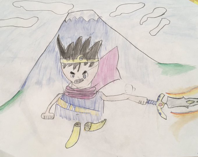 1 7 いくぜバナナ! ギガスラッシュ!! なんでバナナと富士山なのかって!? 知らねーよ!!そんなの俺(親)が聞きたいぜ!!!! #絵描きさんと繫がりたい #無名絵師 #イラスト #ドラクエ 22/07/18 10:21