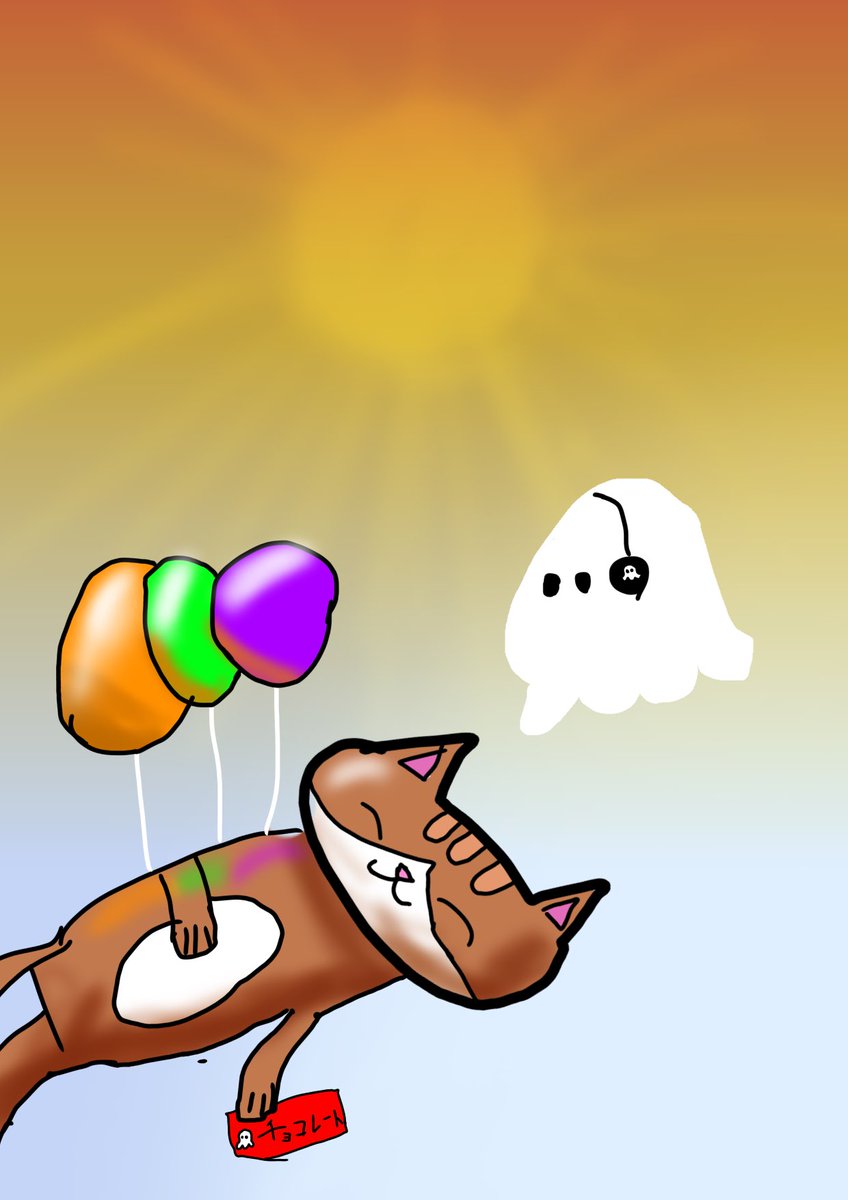 1 7 オヤツをくれない猫ちゃんに、オバケが風船つけてイタズラしたよ。 #イラスト 22/10/02 10:31