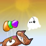 オヤツをくれない猫ちゃんに、オバケが風船つけてイタズラしたよ。 #イラスト