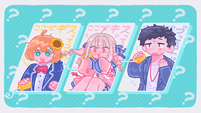 キャラ選択でわ〜わ〜する3人 🖥🌻🍼 #社築納品物 #ひまあーと #りりむとおえかき