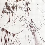 @late_summer_Cat さん宅の狩人様、夏暮さんを描かせていただきました。 素敵なケモ耳は啓蒙高くないと見えないそうなので、お会いした時のために上げておかなきゃ