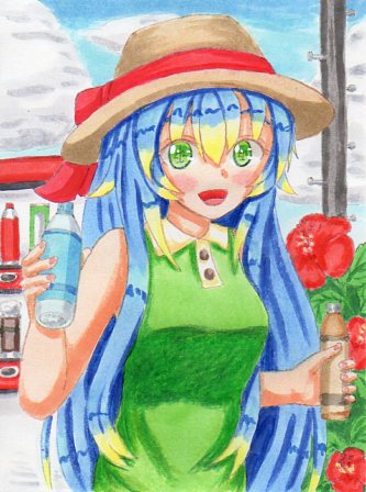 2 14 色塗り終わりました! オルターエゴverの眞夜姫ちゃん。 水分補給は夏はホント大事、気を付けないとですね! #アナログイラスト #コピック #うちの子 23/06/28 11:07