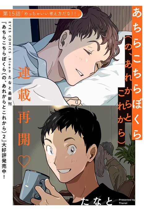 今日25日だった!うっかりしてました。.Bloom vol.37 に『あちらこちらぼくら(の、あれからとこれから)』の第16話が掲載されています、真嶋の家族が真嶋と園木の暮らしてる部屋に来る話!どうぞよろしくお願いします☺️ 本誌(kindle)amzn.asia/d/5Lin2NX 単話(kindle)amzn.asia/d/bZSeRzB