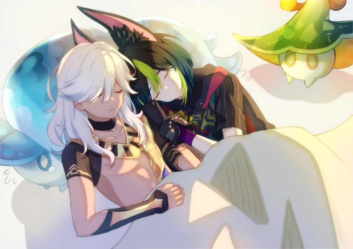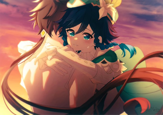 💚 🍾 Here is my piece for @zhongvenbigbang from the beautiful fic of @Tomakoee Please give it a read~ Post with the link is in the replies! 💎🧡 #zhongven #ZhongvenBB_2022 #venti #zhongli #GenshinImpact #原神