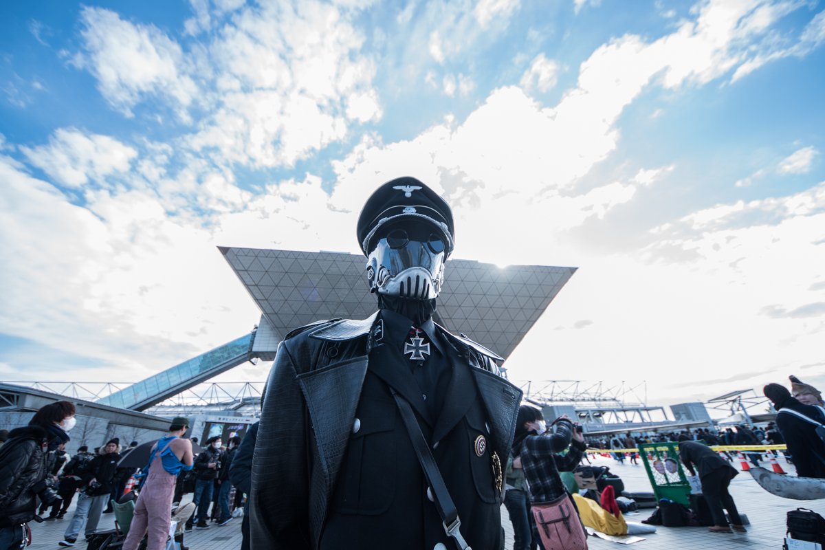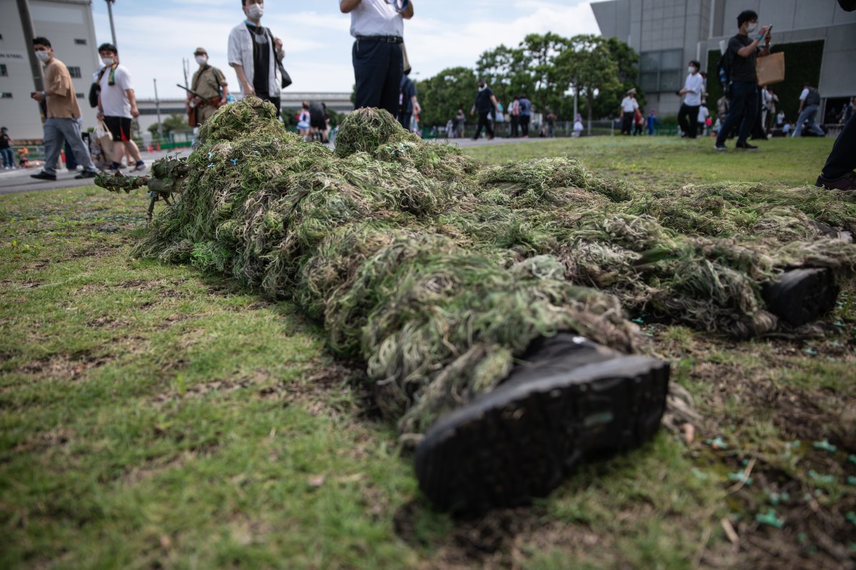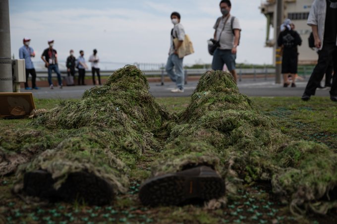 19 41 コミックマーケット100 二日目 コミケ名物現地迷彩のおふたり 今回は防災公園じゃないからギリースーツに東館外に合わせた樹脂パーツが追加されてるのが素敵 #C100 #C100コスプレ 22/08/14 18:04