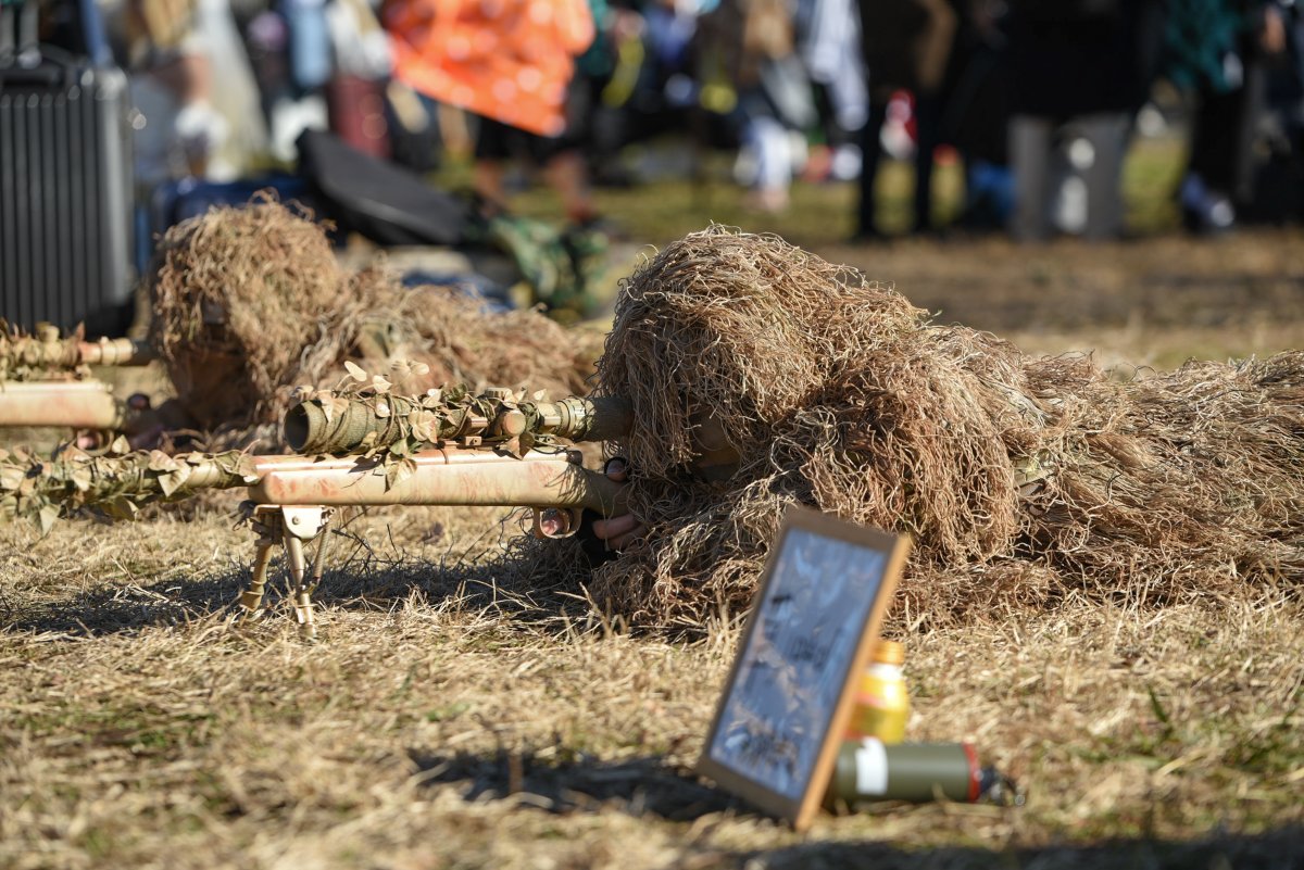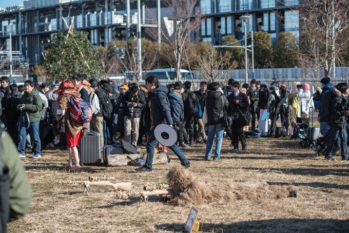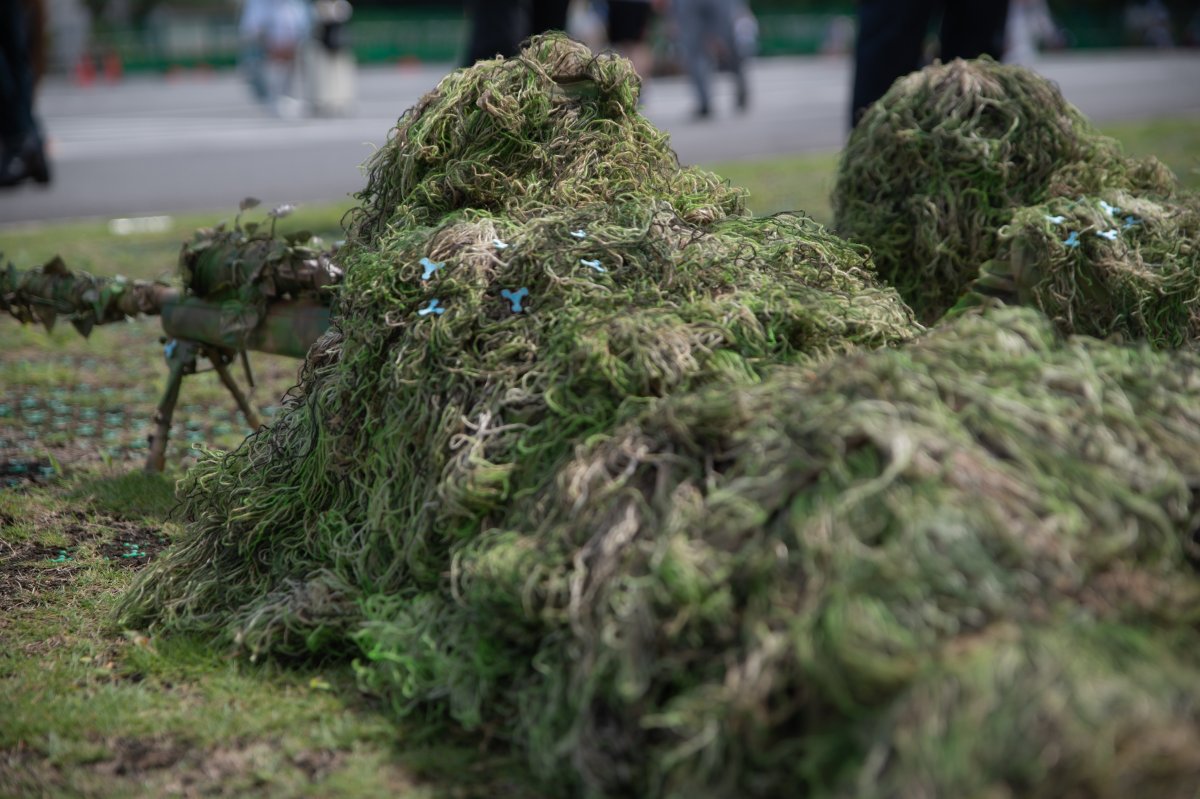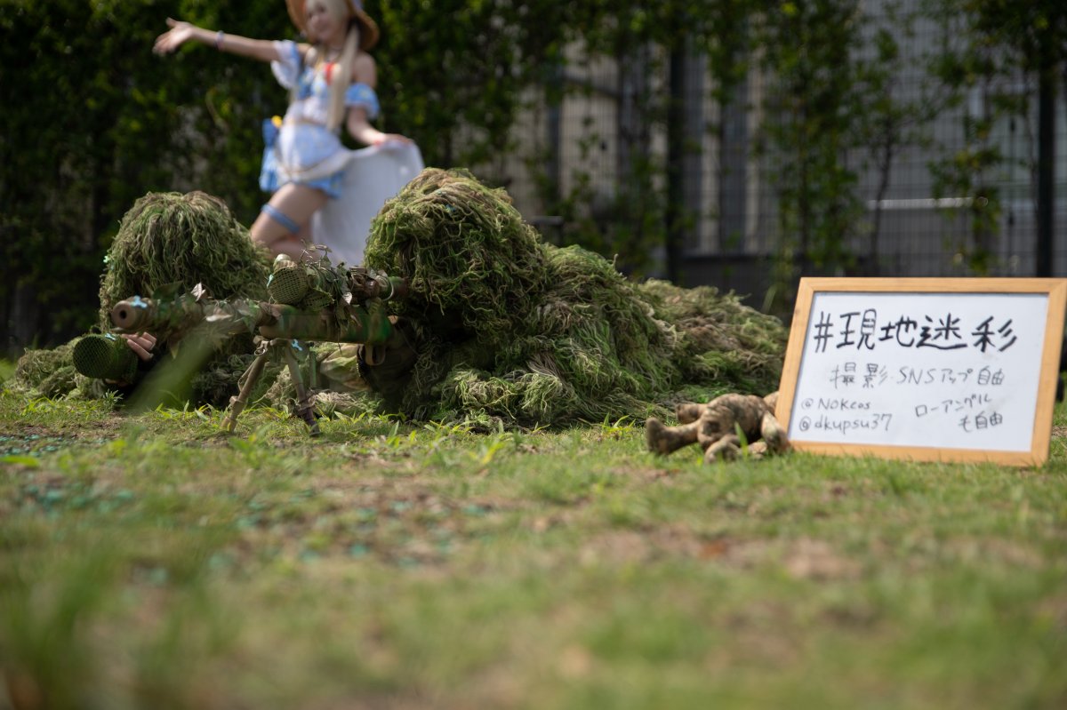コミックマーケット100 二日目 コミケ名物現地迷彩のおふたり 今回は防災公園じゃないからギリースーツに東館外に合わせた樹脂パーツが追加されてるのが素敵 #C100 #C100コスプレ