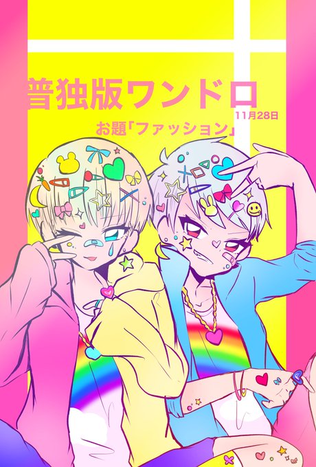 #普独版ワンドロ お題「ファッション」遅刻&3時間オーバーです! 💗💗原宿系ファッション、デコラってかわいい❣️ kawaii💗のてんこもりです🌈✨🎀💕