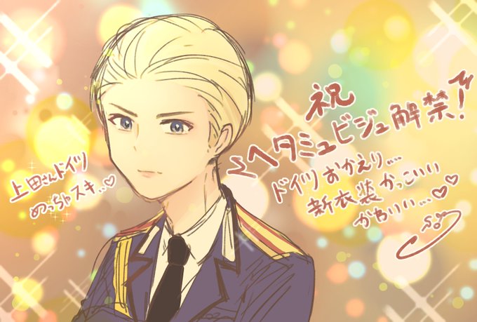 ヘタミュビジュ解禁有難い🙏🙏 上田さん🇩🇪めちゃくちゃ好きだ〜‼️っていうらくがきです 新衣装良すぎる顔よすぎる全部よすぎる大好きです楽しみです😻 おかえりなさい‼️‼️