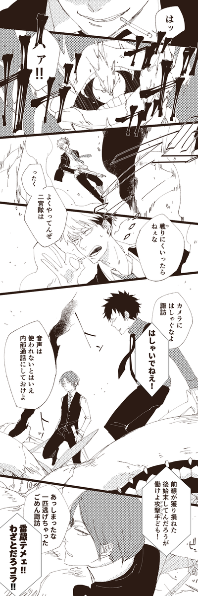 432 1199 いつぞやのリク:21歳組がなんやかんやあってスーツで戦ってる 17/10/08 23:19