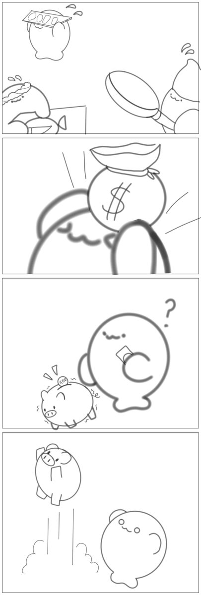 ぼりしょいさんの[あいきゃんふらいと貯金箱のお話]を4コマ形式で絵にして見ました(˙꒳˙ᐢ )🐷 リプに続きます1/3 #ふたばあーと #あいきゃんふらいあーと twitter.com/bnkr06/statu…