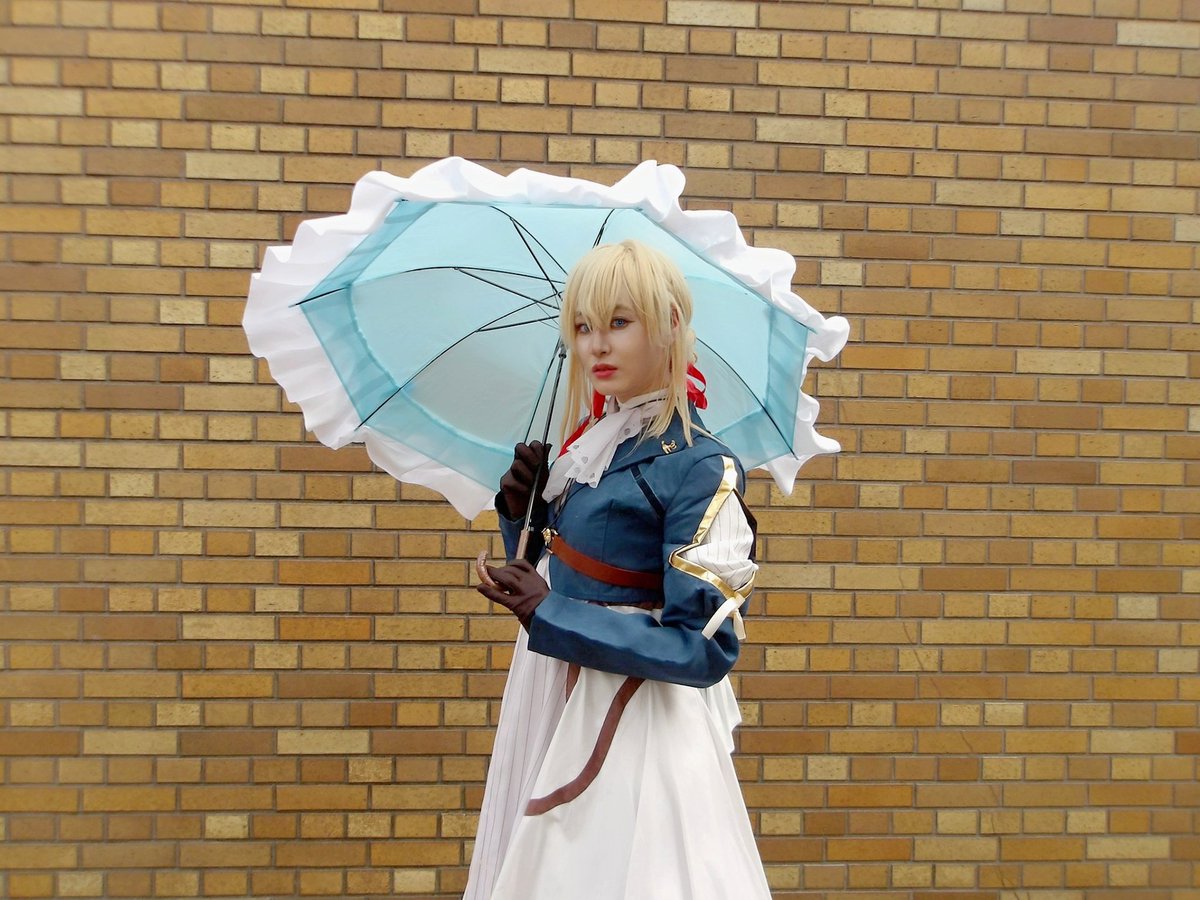 【 Cosplay 】 ヴァイオレット・エヴァーガーデン 《 フリルのついた日傘を差して、エメラルドのブローチを着けた、義手の自動手記人形 》 . . 📷: プレセア(@xtrail_cdi )様 #アコスタ池袋 #コスプレ