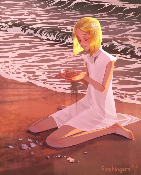 A quick drawing of Phos. I love pictures where there is wild weeds like these, they are so fluffy ! I thought it would suits hnK flore island a lot 🤭 #housekinokuni #housekinokunifanart #phosphophyllite #landofthelustrous #fanart
