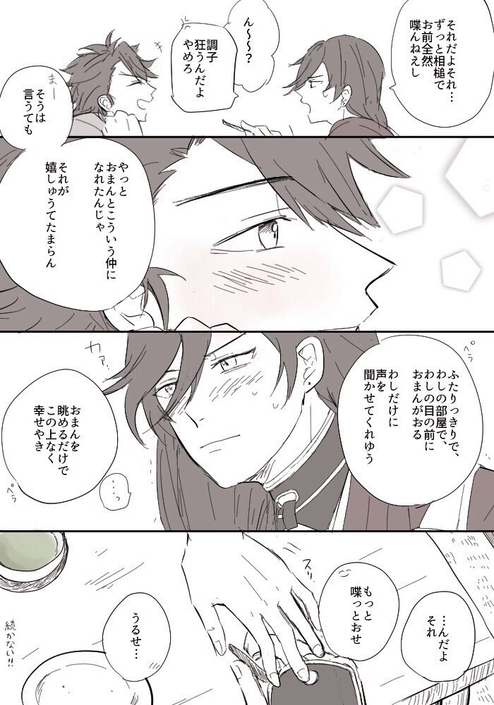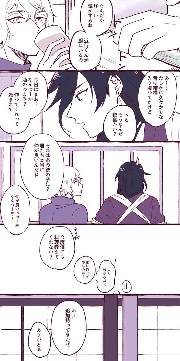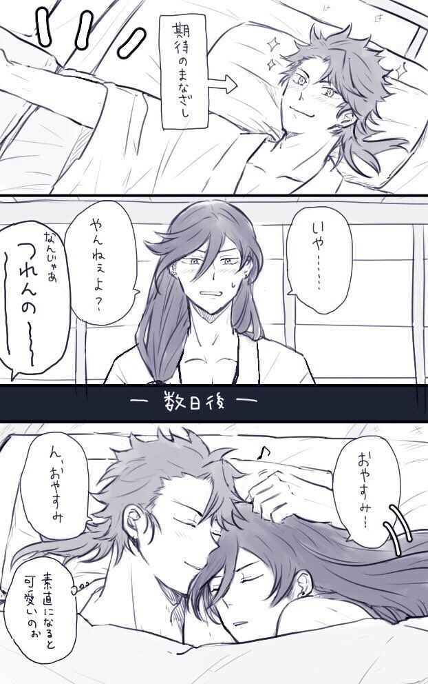 84 363 むついずの兼さん、最初は照れて腕枕とか嫌がりそうだけど何だかんだ数日くらいでアッサリ慣れそう それからは「よし寝るか」ってなったら何の躊躇いもなくスルッと入ってきそう むっちゃんあったかいから… 18/11/05 01:06