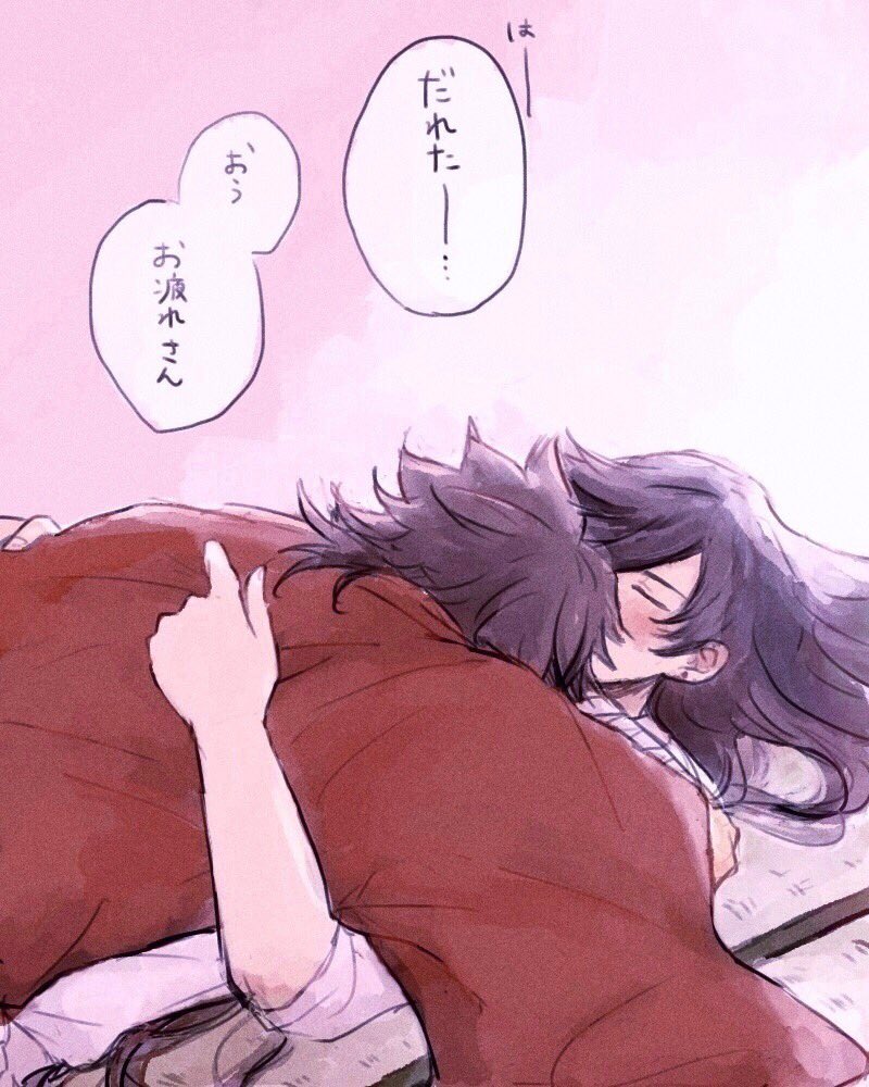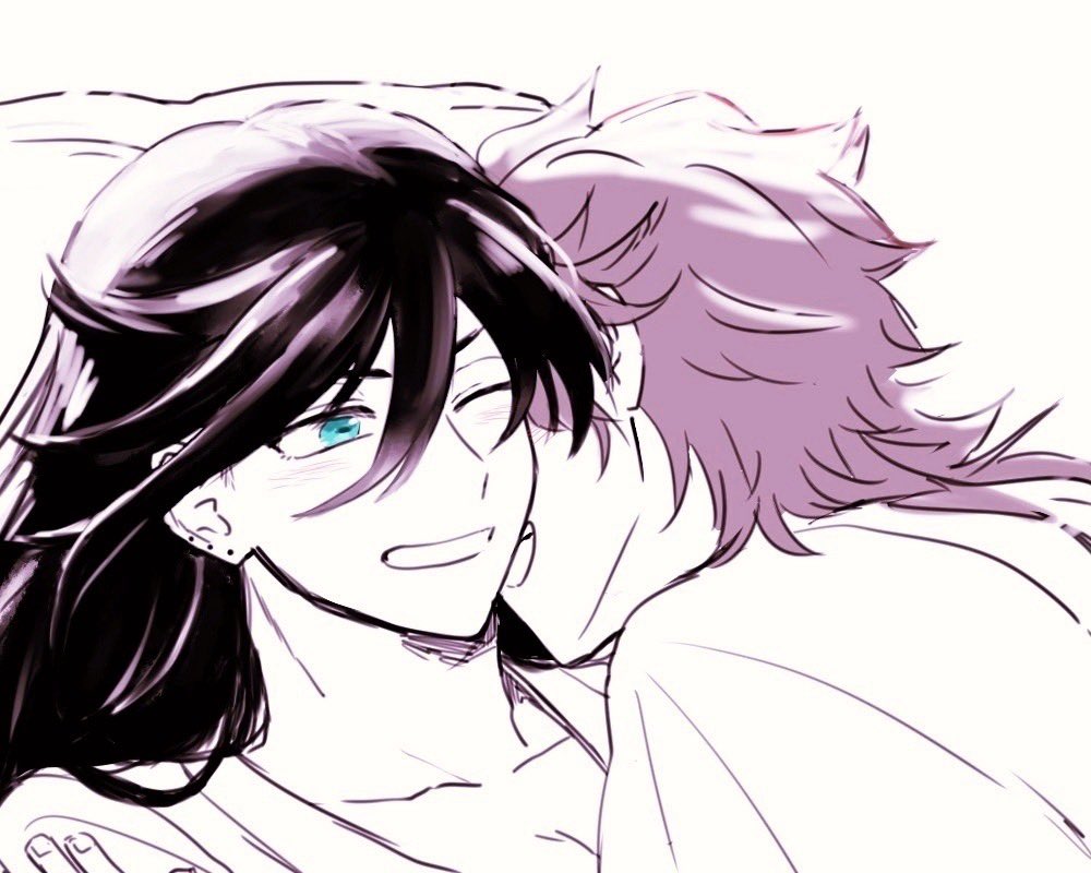 21 76 むついずらくがき おはよう!朝だよ!! 髪上げてなくてむつに思いっきり挟まれてて いてぇな… ってなってそうなかねさん🤔 22/05/18 07:39