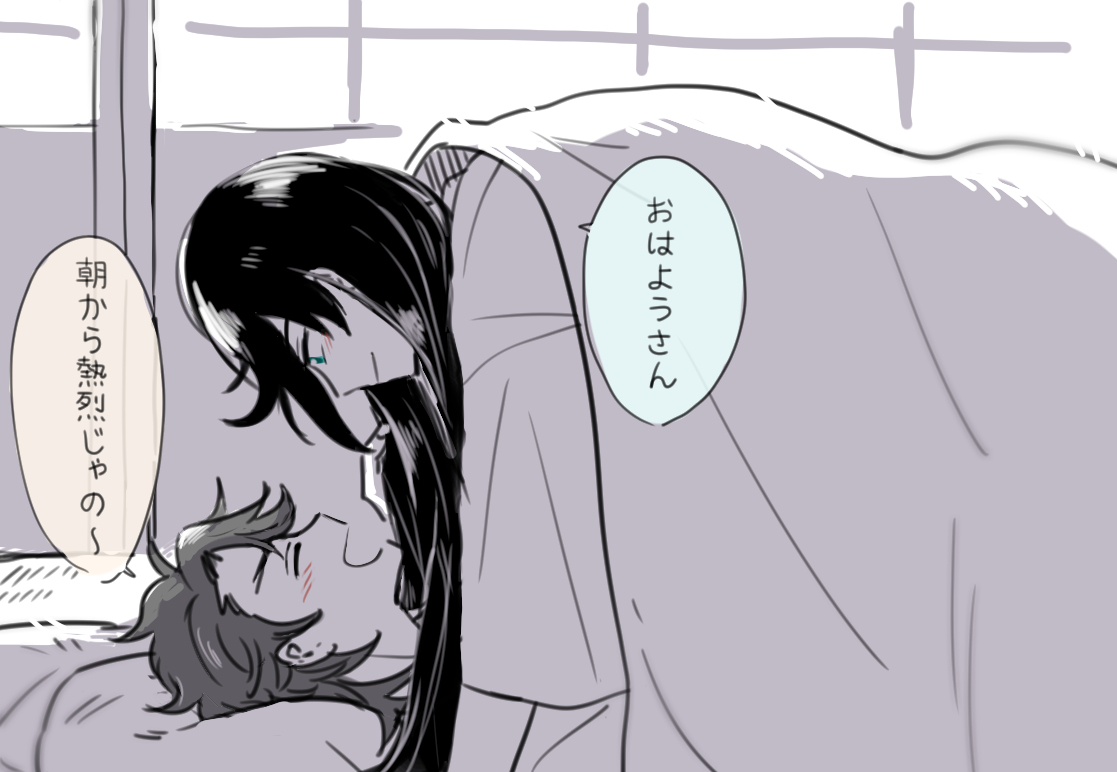 むついずらくがき おはよう!朝だよ!! 髪上げてなくてむつに思いっきり挟まれてて いてぇな… ってなってそうなかねさん🤔